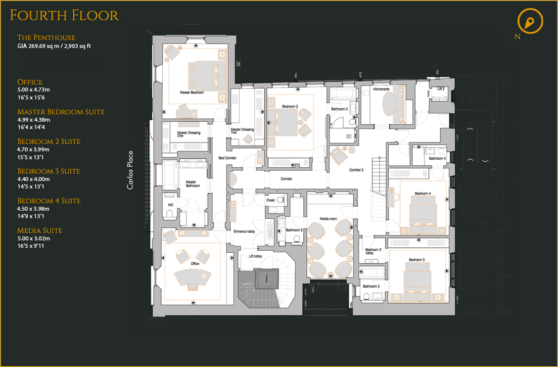 Master Bedroom Suite, with, Lobby, Bedroom, Dressing Rooms & Master Bathroom.